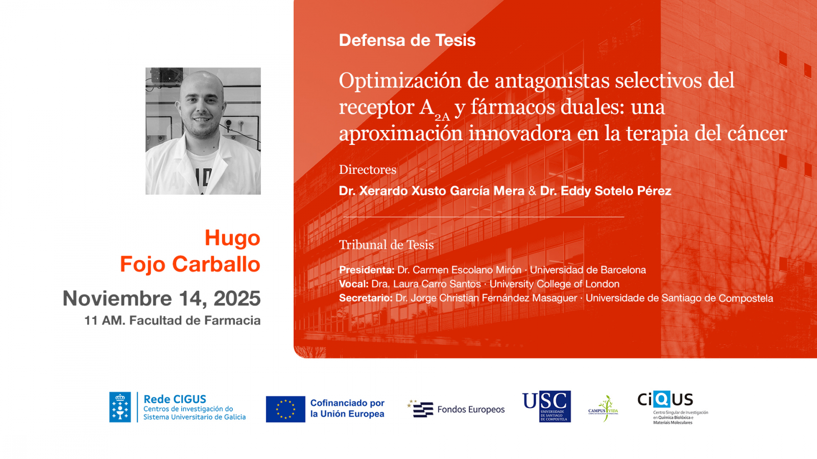 PhD Defense: Optimización de antagonistas selectivos do receptor A2A de adenosina e fármacos duais: una aproximación innovadora na terapia do cancro