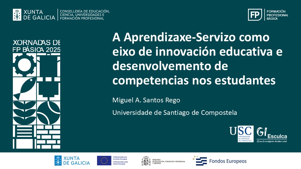 O profesor Miguel A. Santos Rego, coordinador do Grupo de Investigación Esculca, participará nas Xornadas formativas para o profesorado de Formación Profesional Básica, organizadas pola Consellería de Educación, Ciencia, Universidades e Formación Profesional da Xunta de Galicia.
